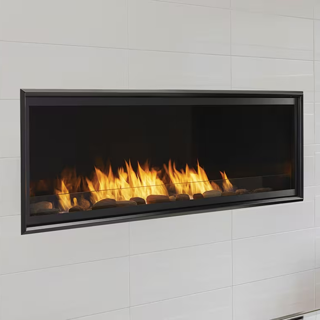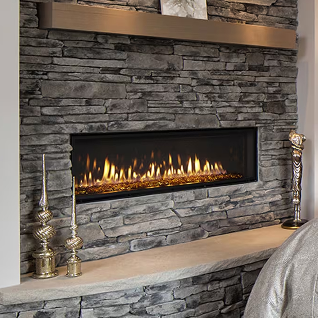 The Mezzo linear gas fireplace features one of the cleanest designs in the industry, punctuated by end-to-end ribbon flames. A wide range of sizes and styles help make Mezzo yours – including trendy fire bed materials and timeless log sets – and heat-management options so you can enjoy the beauty of this linear fireplace near your TV.