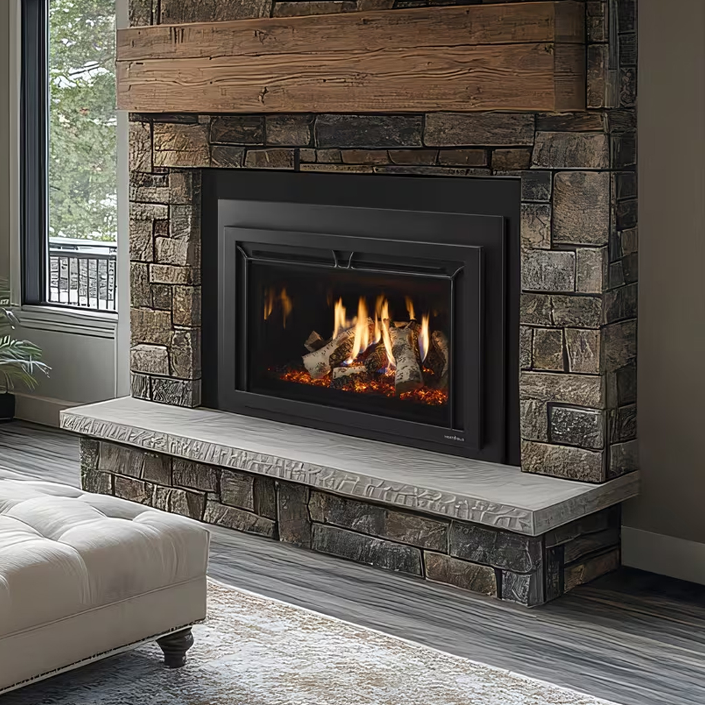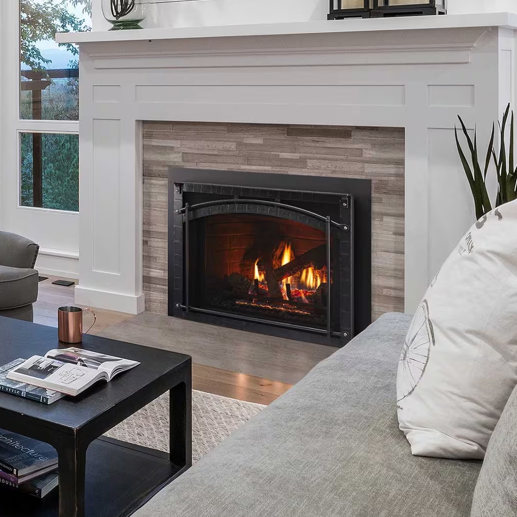 Transform your home with our top-of-the-line Escape gas fireplace insert. The biggest, clearest view of the fire, hand-painted logs and efficient heating take your fireplace from unused to unbelievable.