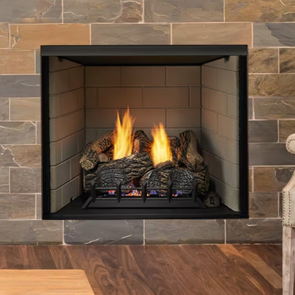 Choose from trendy gray, classic brown or a modern reflective black glass for your interior. Finish it clean to the firebox and add a beautiful Monessen log set.