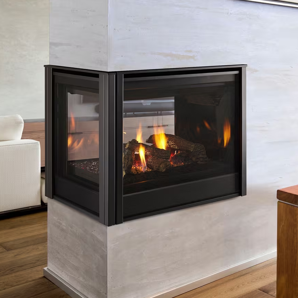 A unique design enables the Peninsula gas fireplace to elegantly divide a space. This three-sided gas fireplace allows the flames to reach out into different rooms. User-friendly controls enables you to match flame height and heat output to your mood.