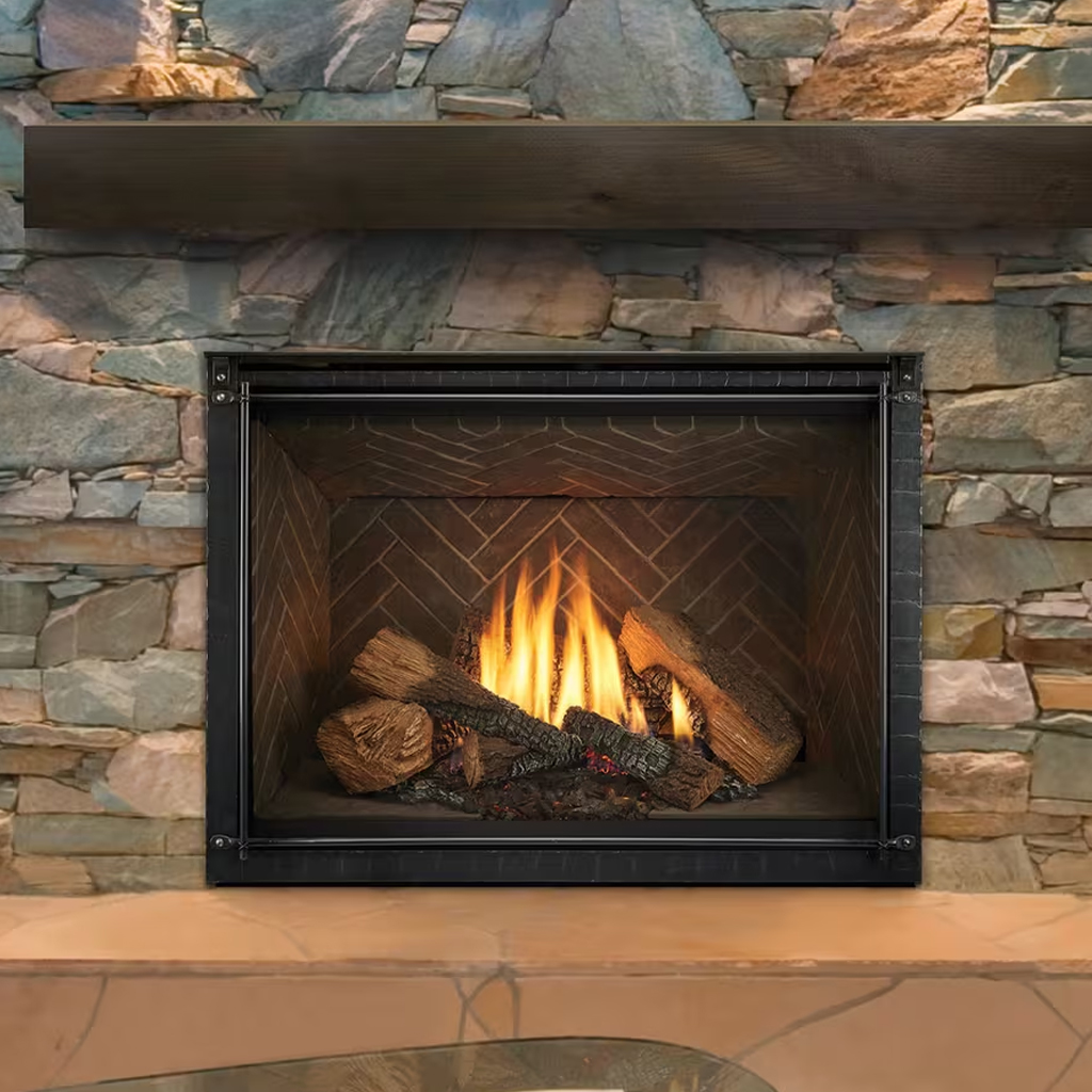 Create a getaway outside your door. With stainless-steel construction, the Vesper ventless outdoor gas fireplace handles the elements. Place it anywhere with no venting or chimney needed. Get a big view of the flames with a 27″ tall opening either 36″ or 42″ wide. Pick from three real-life log sets accented by a traditional or herringbone brick interior.