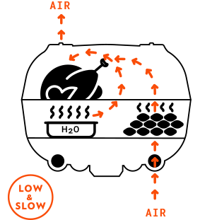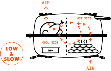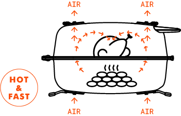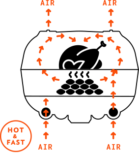 Our patented venting shape for exceptional Two-Zone grilling. Enjoy superior direct high heat cooking and indirect low & slow cooking!